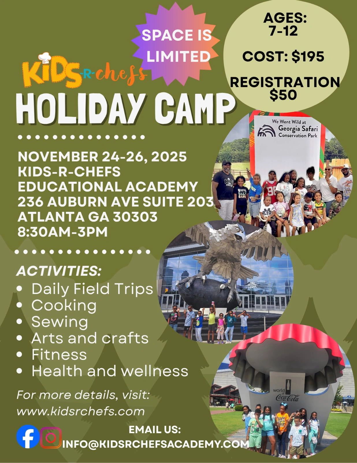Contact at 404-682-1939 or Email Info@kidsrchefsacademy.com